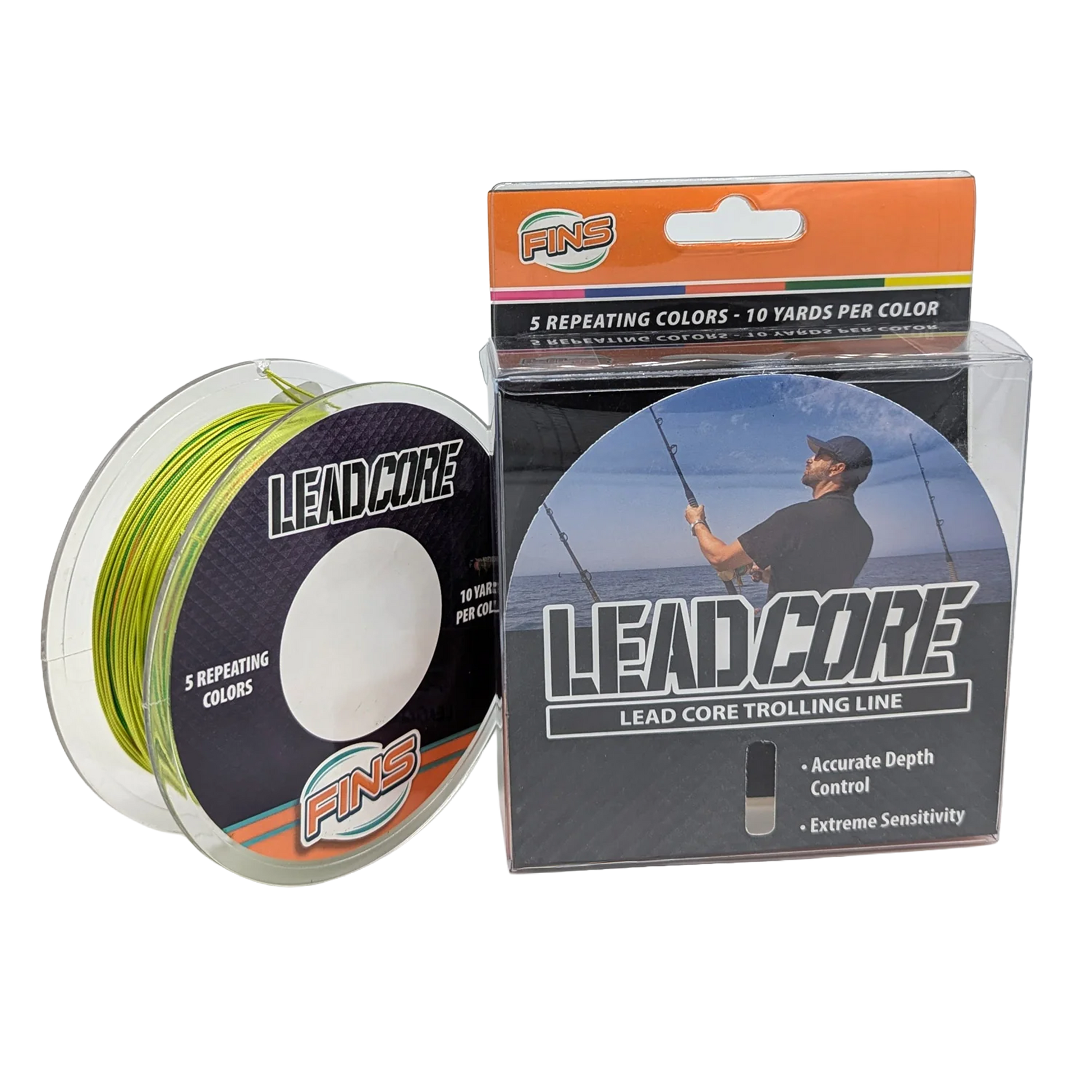 Designed for precise trolling depth control, FINS Lead Core fishing line features a strong braided outer sheath with a weighted lead core for a consistent sink rate. Color-coded every 10 yards, it allows quick depth reference and easy tracking while targeting deep-water fish like walleye, trout, or salmon. Unlike traditional lead core lines that kink, fray, or flatten out over time, our braiding process keeps the outer sheath round and durable, ensuring cleaner deployment, tighter line control, and reliable performance season after season. Durable, abrasion-resistant, and built to handle heavy strikes — it's the perfect tool for serious anglers.